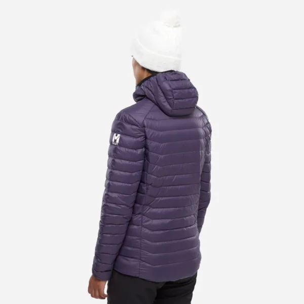Nos cerramos el cuello y nos ponemos la capucha, muy envolvente, para abrigarnos al máximo. El corte deportivo, totalmente ajustado con ribetes elásticos, hace que se mantenga perfectamente en su sitio cuando nos movemos. Guardamos lo fundamental de forma segura en el bolsillo interior y en los dos bolsillos laterales con cremallera. Guardamos nuestra versátil y ligera chaqueta acolchada comprimible en la mochila o nos la ponemos debajo de la chaqueta de protección en nuestras distintas actividades de montaña.
